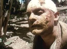 Agora, podemos ver o homem caído. Sua boca aparentemente não é banguela, mas deixa escorrer um fio de sangue que, em contato com o chão, sugere uma relação de cumplicidade entre o homem e aquele lugar, a qual se intensificará ao longo do filme. Mesmo estando em ambiente de mata, naturalmente verde, a fotografia continua marcada por tons terrosos que, por um lado, lembram as amêndoas de cacau e o chocolate, mas por outro, remetem ao sangue, à lama, ao chão.