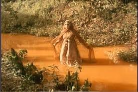 Jura, personagem da atriz Vera Bocaiúva, em cena da parte final do filme. Atenção para a cor do riacho